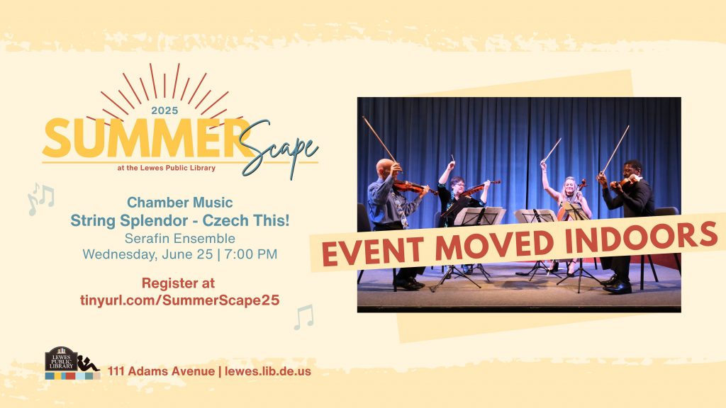 The Lewes Public Library presents SummerScape 2025, featuring fifteen live events in the library’s new outdoor pavilion, celebrating performing arts, history, literature, and science!