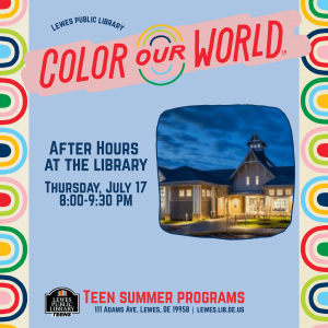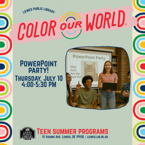 - Click here and leave a short review of any teen book from the Lewes Library teen collection and earn a raffle ticket for our Summer Grand Prize! The more reviews you write, the more chances you have to win—submit as many as you’d like! For more information about Lewes Library’s Teen Summer Reading Challenge, click here.